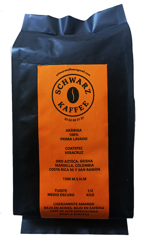 SCHWARZ KAFFEE MEJOR IMPOSIBLE COMPRAR CARACTERISTICAS Arabiga 100% prima lavado Coatepec Veracruz Oro Azteca, Heisha, Masella, Colombia, Costa Rica 95 y San Ramón 1300 MSNM
